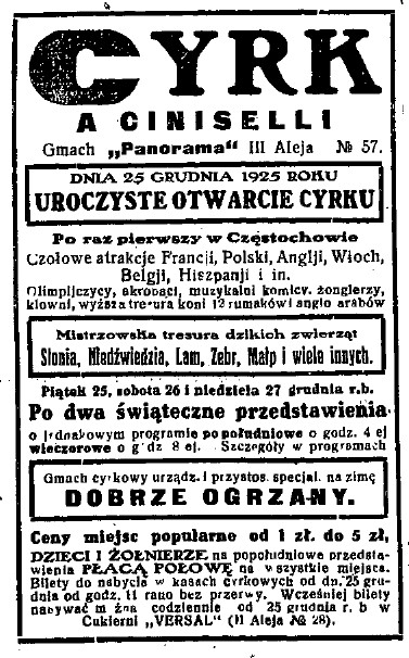 | 1925 XII 25 – 1926 II | Cyrk A. CINISELLI |