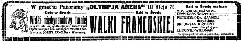 | 1913 X 3 - 1913 XI 10 | Olimpia-Arena, walki atletów |